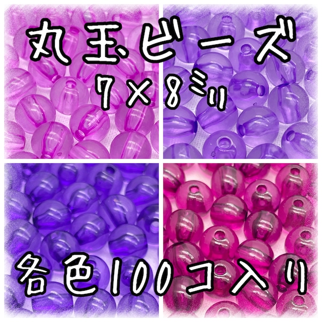 ハンドメイド 手芸 ビーズ アクセサリーパーツ アクリルビーズ ラウンドビーズ 推しカラー 丸玉ビーズ クリアタイプ 100個入り サイズ 約7×8㎜穴2㎜ ①ライラック ②ラベンダー ③バイオレット ➃パープル