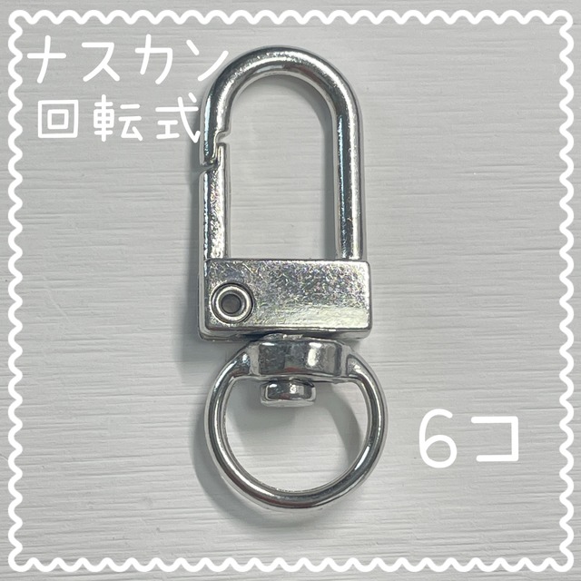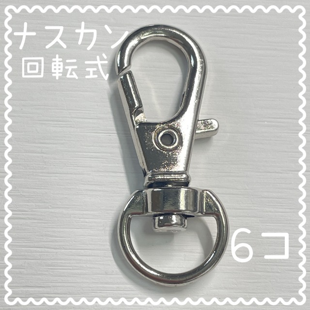 ハンドメイド 手芸 アクセサリーパーツ カニカン キーホルダー製作 回転式ナスカン シルバー 6個入り 合金製 サイズ 約30×11×6㎜穴5×9㎜