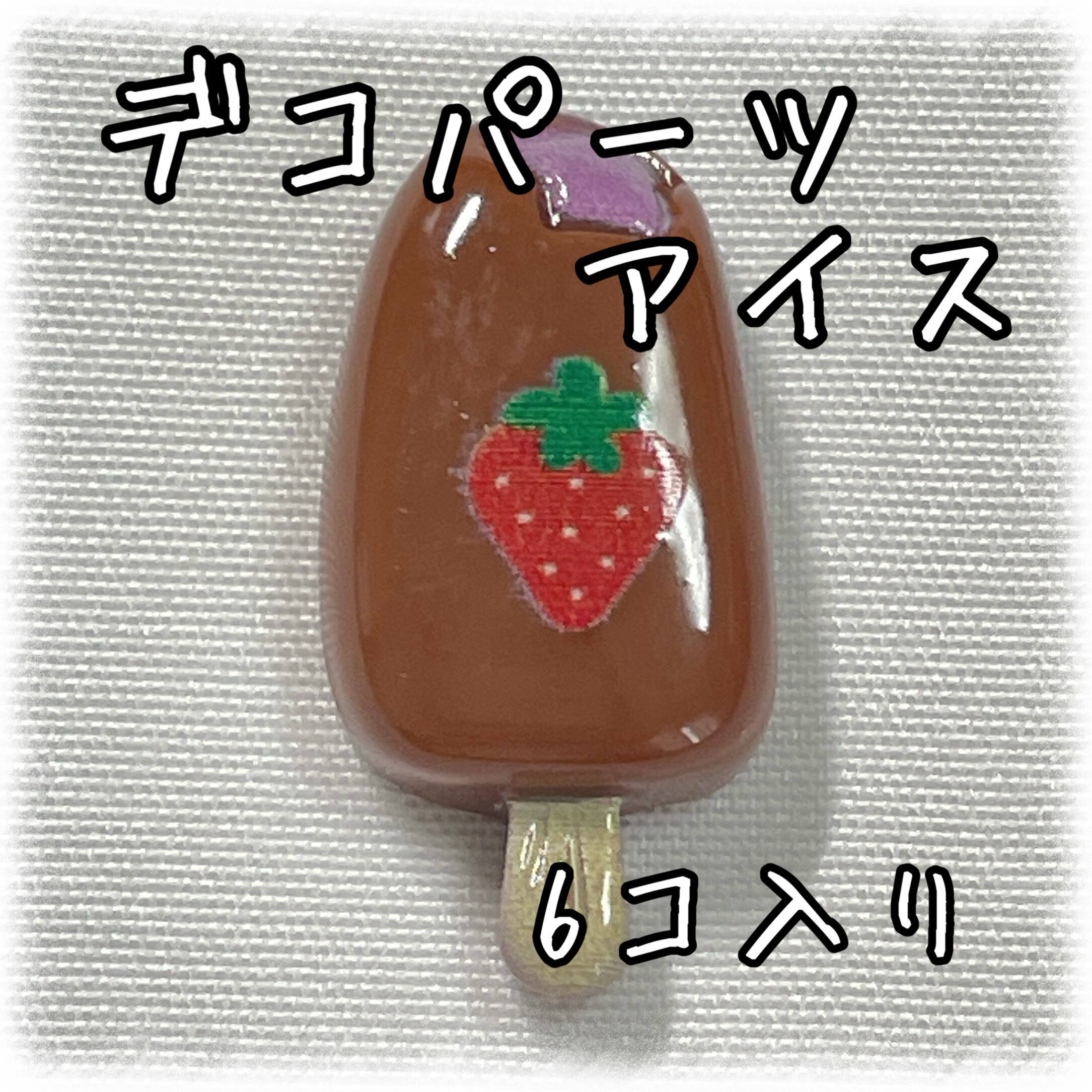 アイスキャンディ デコパーツ イチゴ×ブラウン 6個入り 貼り付けパーツ【DP-IC-008】
