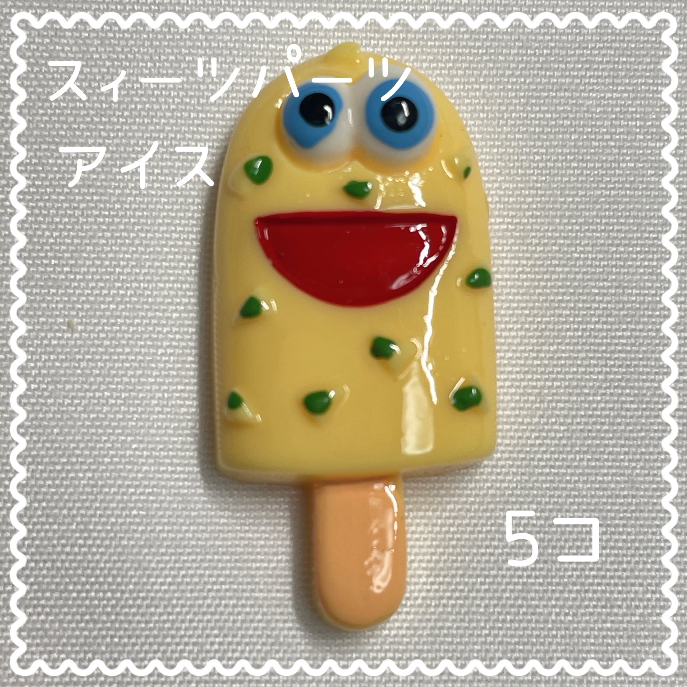 アイス キャンディ デコパーツ 顔付きイエロー 5個入り 貼り付けパーツ【DP-IC-012y】
