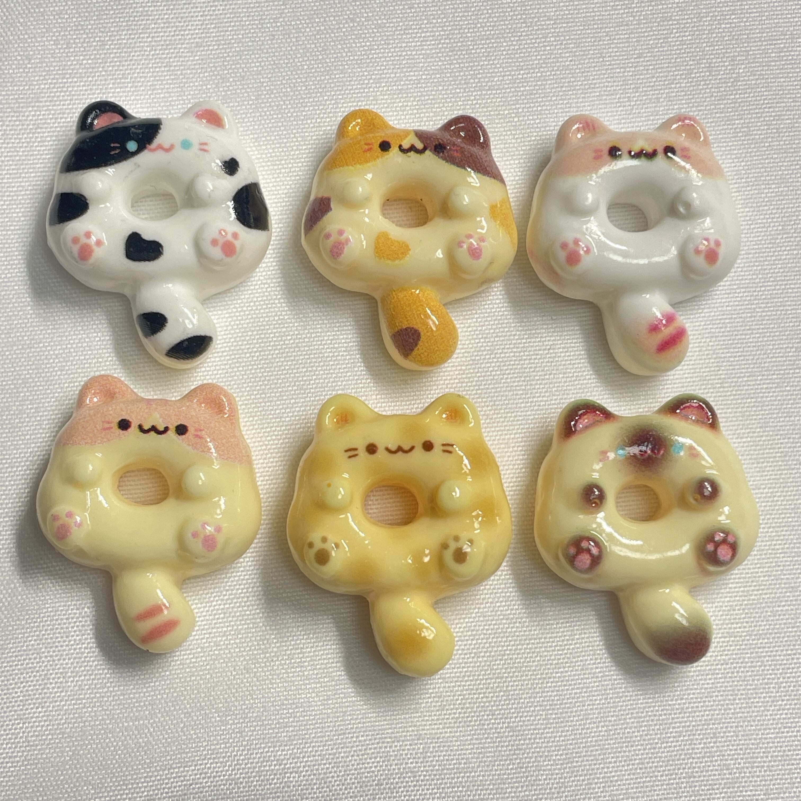 ねこ ドーナツ デコパーツ 各2個入り 6種類 貼り付けパーツ【DP-NKDT】