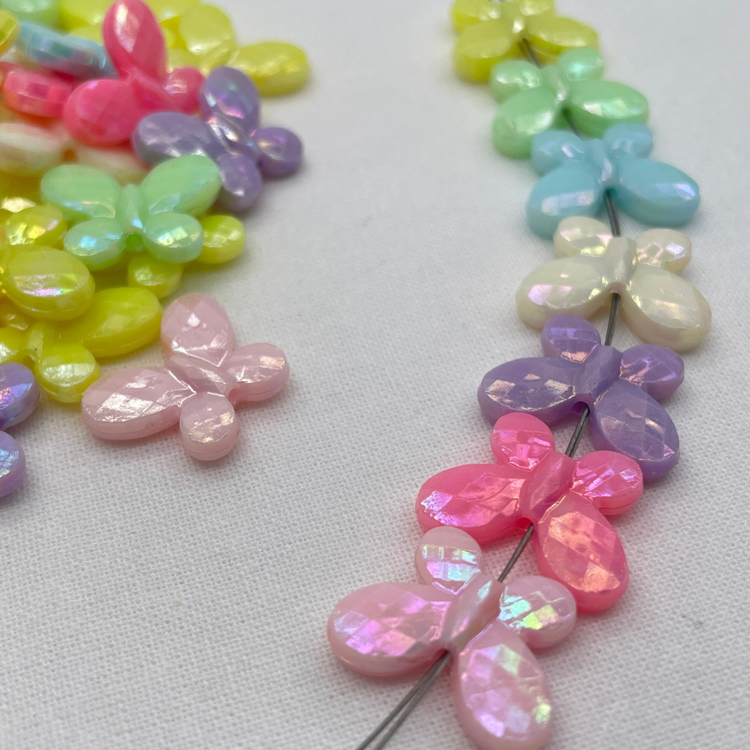 蝶 アクリルビーズ パステル オーロラ加工 ランダムミックス 50個入り【AB-BF-PA2】