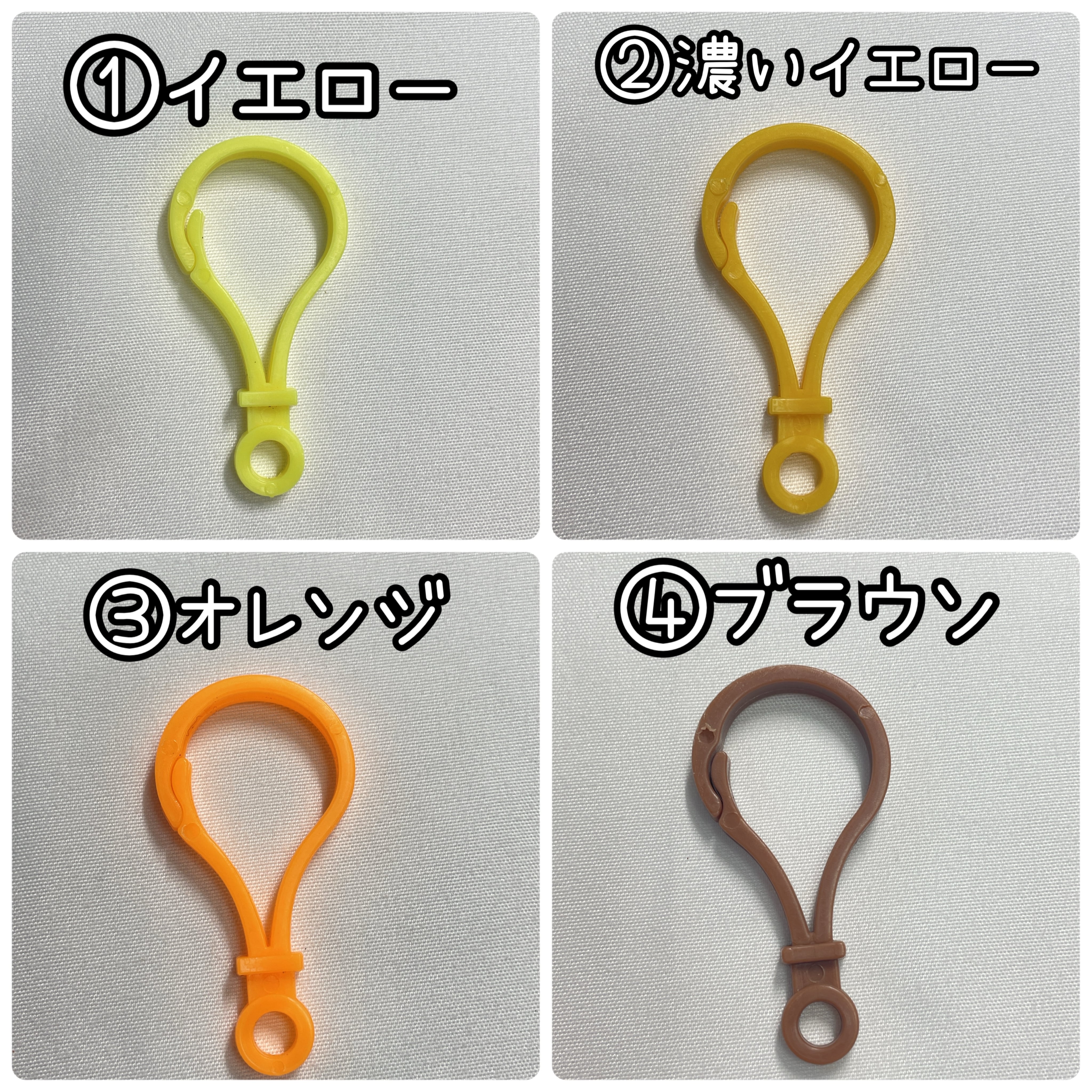 ①イエロー ②濃いイエロー ③オレンジ ➃ブラウン