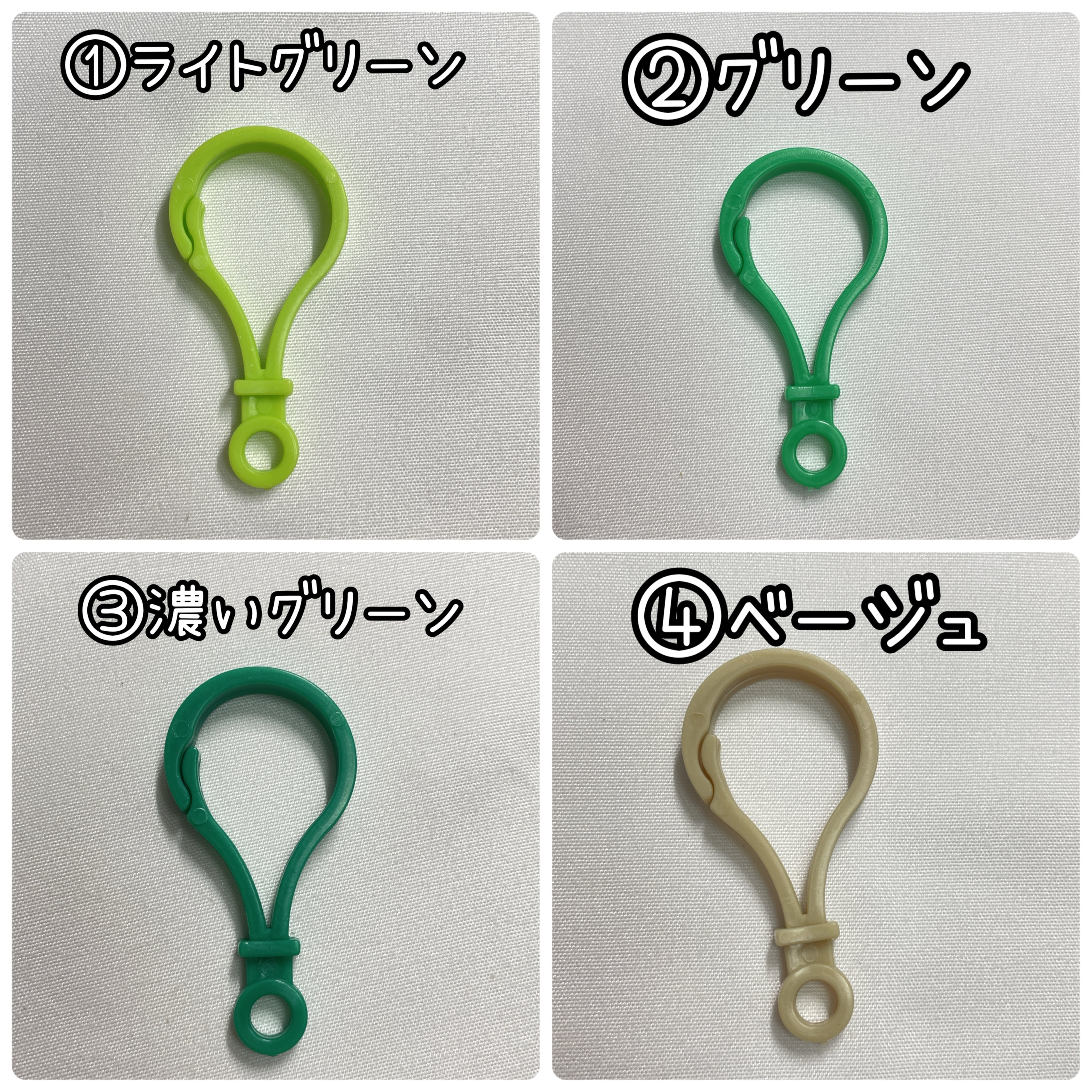①ライトグリーン ②グリーン ③濃いグリーン ➃ベージュ