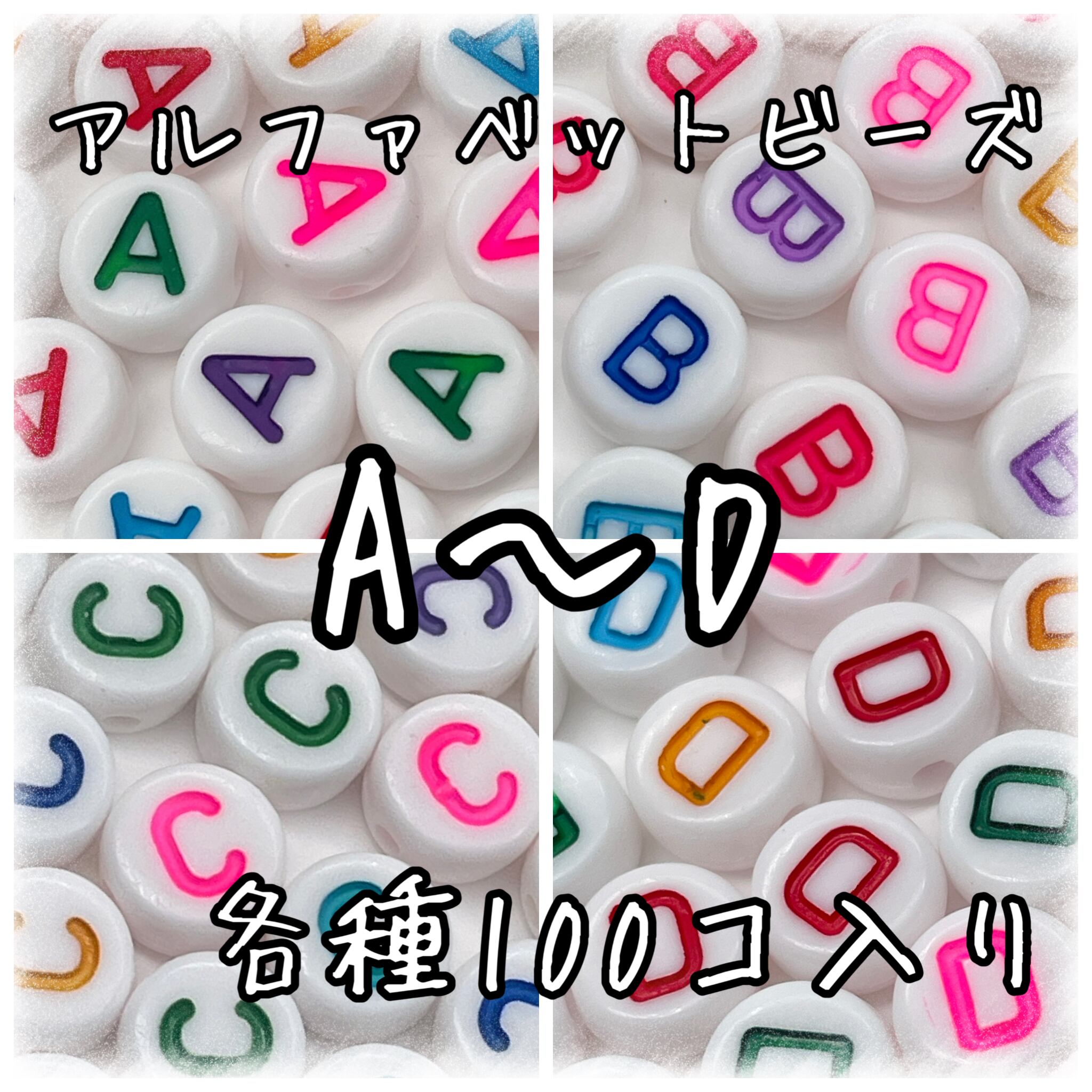 A~D 単文字 アルファベットビーズ 100個入り【AB‐EA】