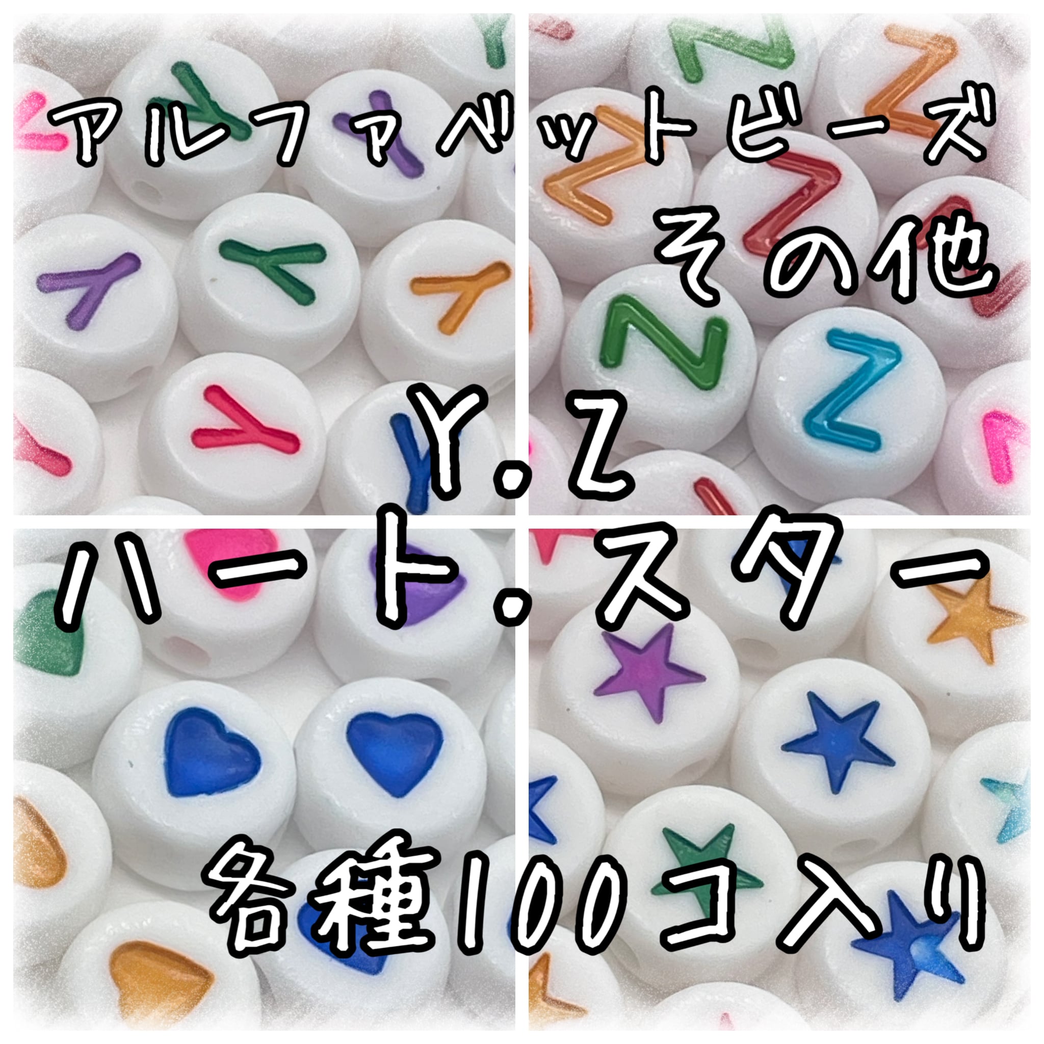 Y Z ハート スター 単文字 アルファベットビーズ 100個入り【AB‐EA】