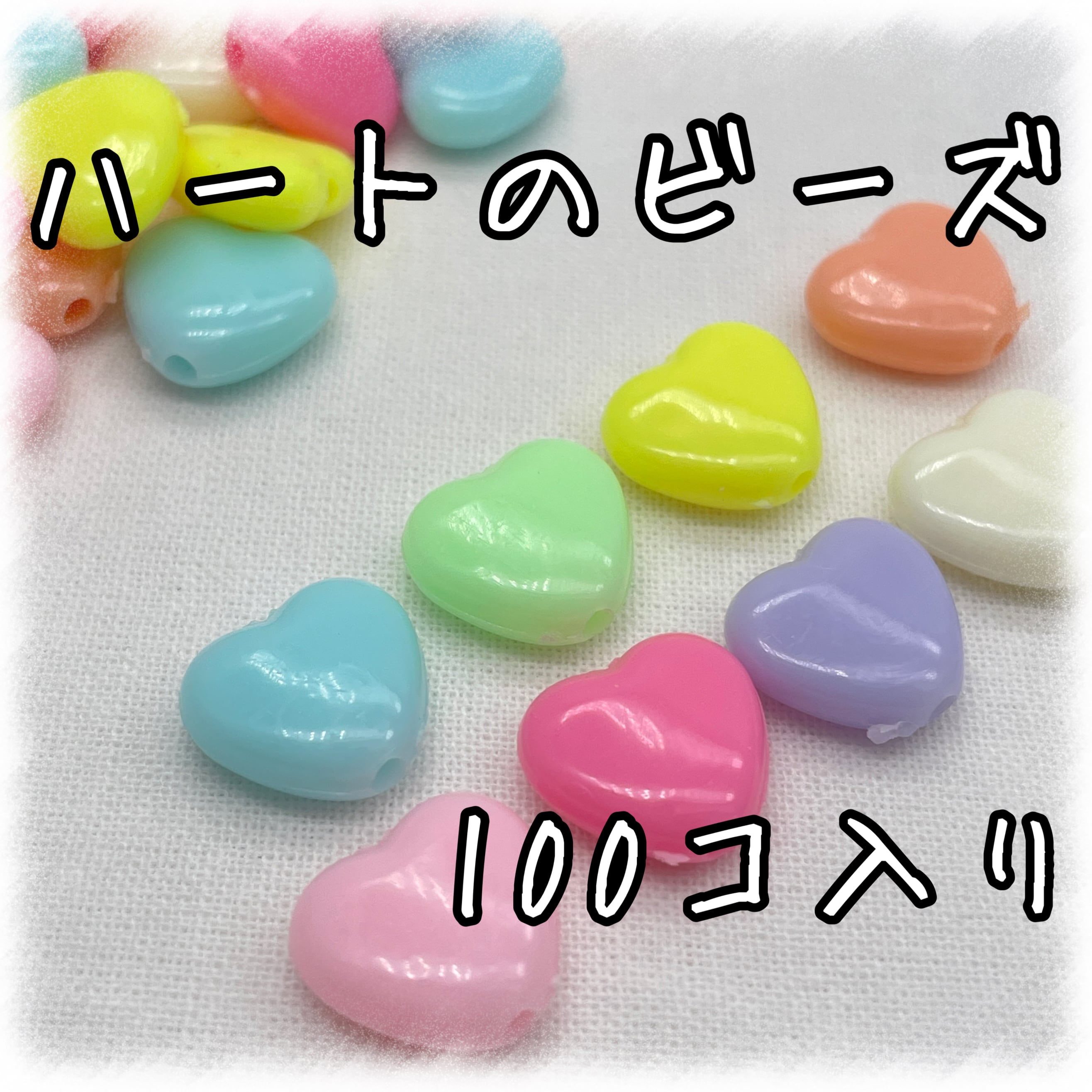 ハート アクリルビーズ パステル ランダムミックス 100個入り【AB‐HAT-13】