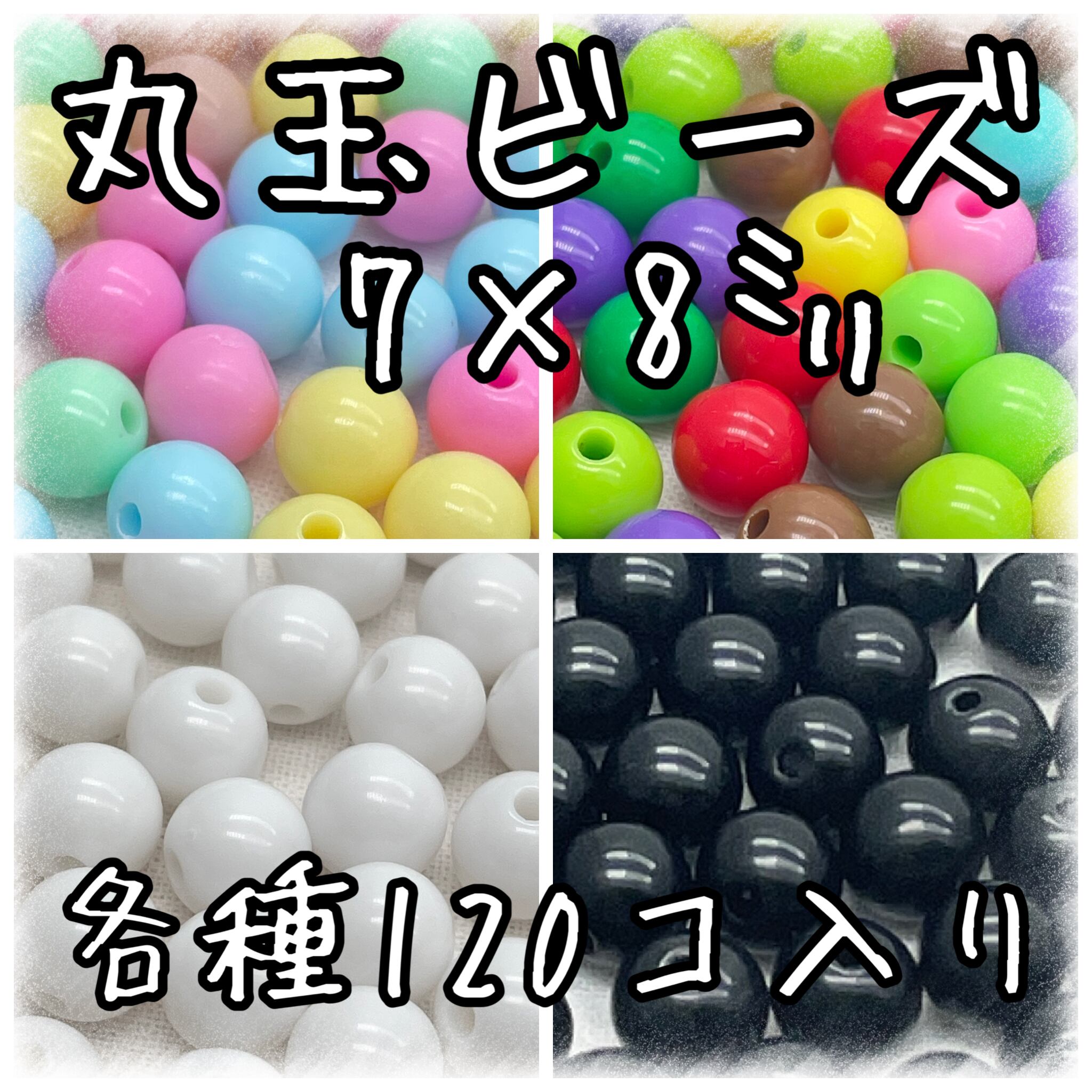 丸玉8㎜ 不透明 アクリルビーズ 各種 120個入り ラウンドビーズ【RB-n8】