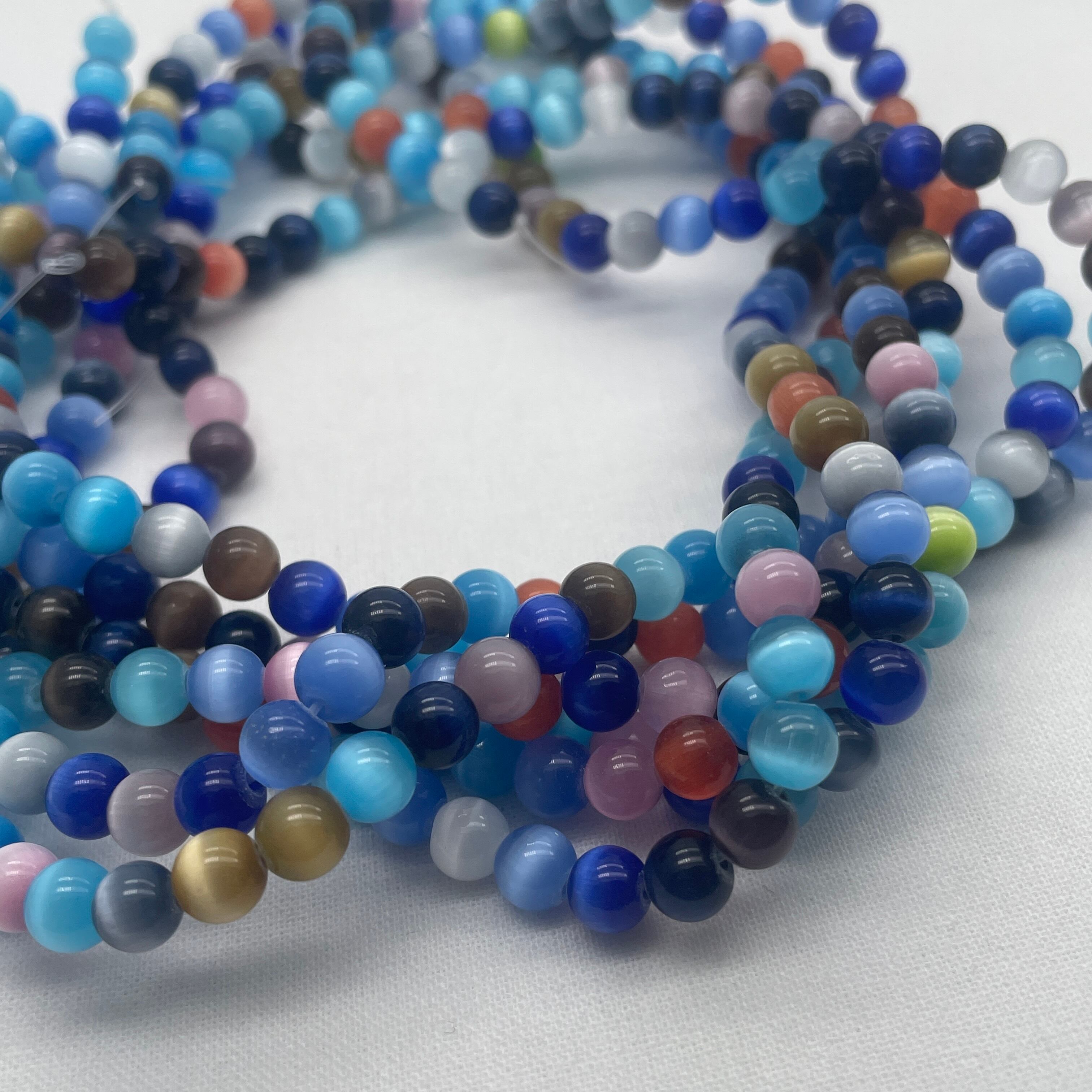 ガラスビーズ 1連 キャッツアイ 6㎜ 65個入り【GB-CE-06】