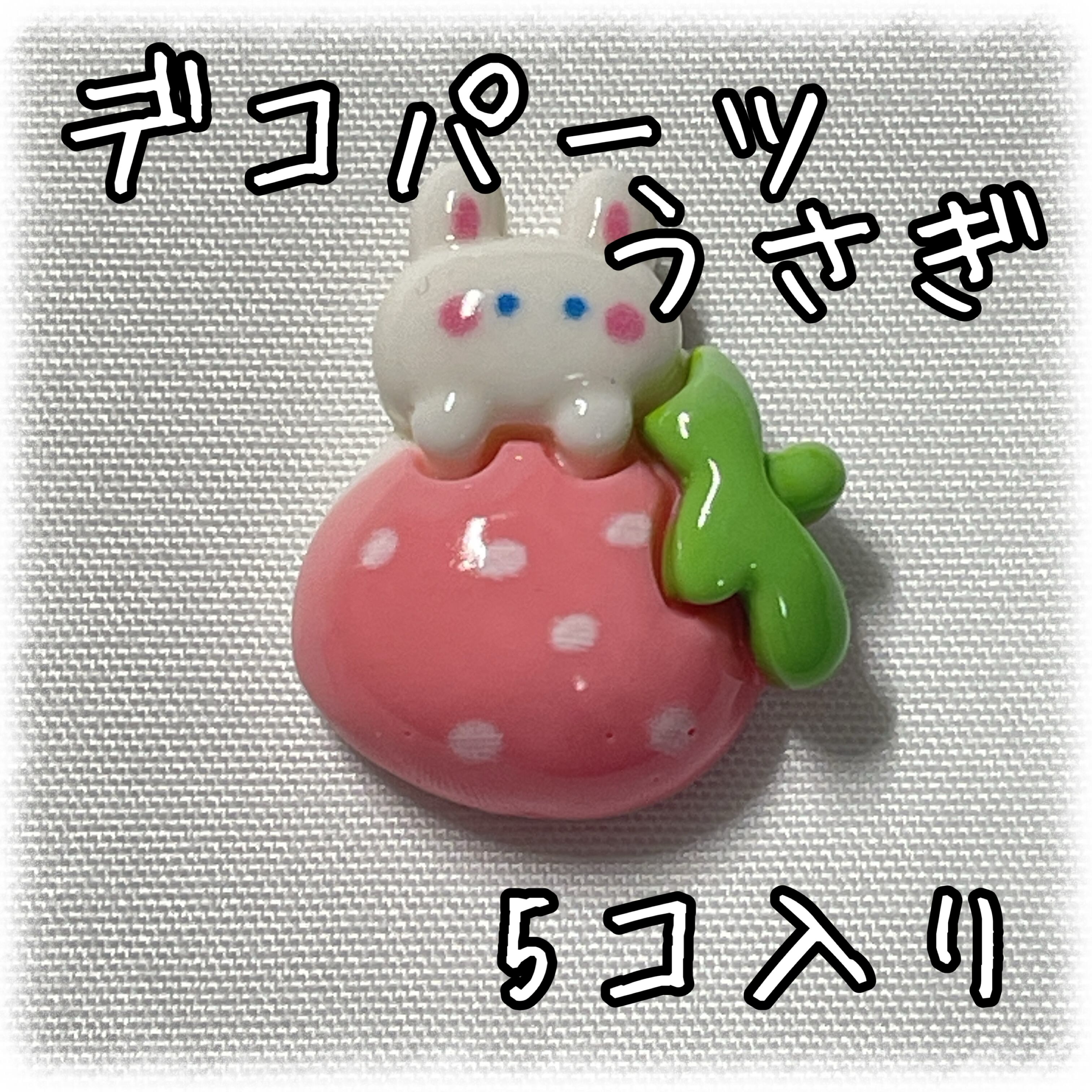 うさぎ×いちご デコパーツ 5個入り 貼り付けパーツ【DP-RBT-002】