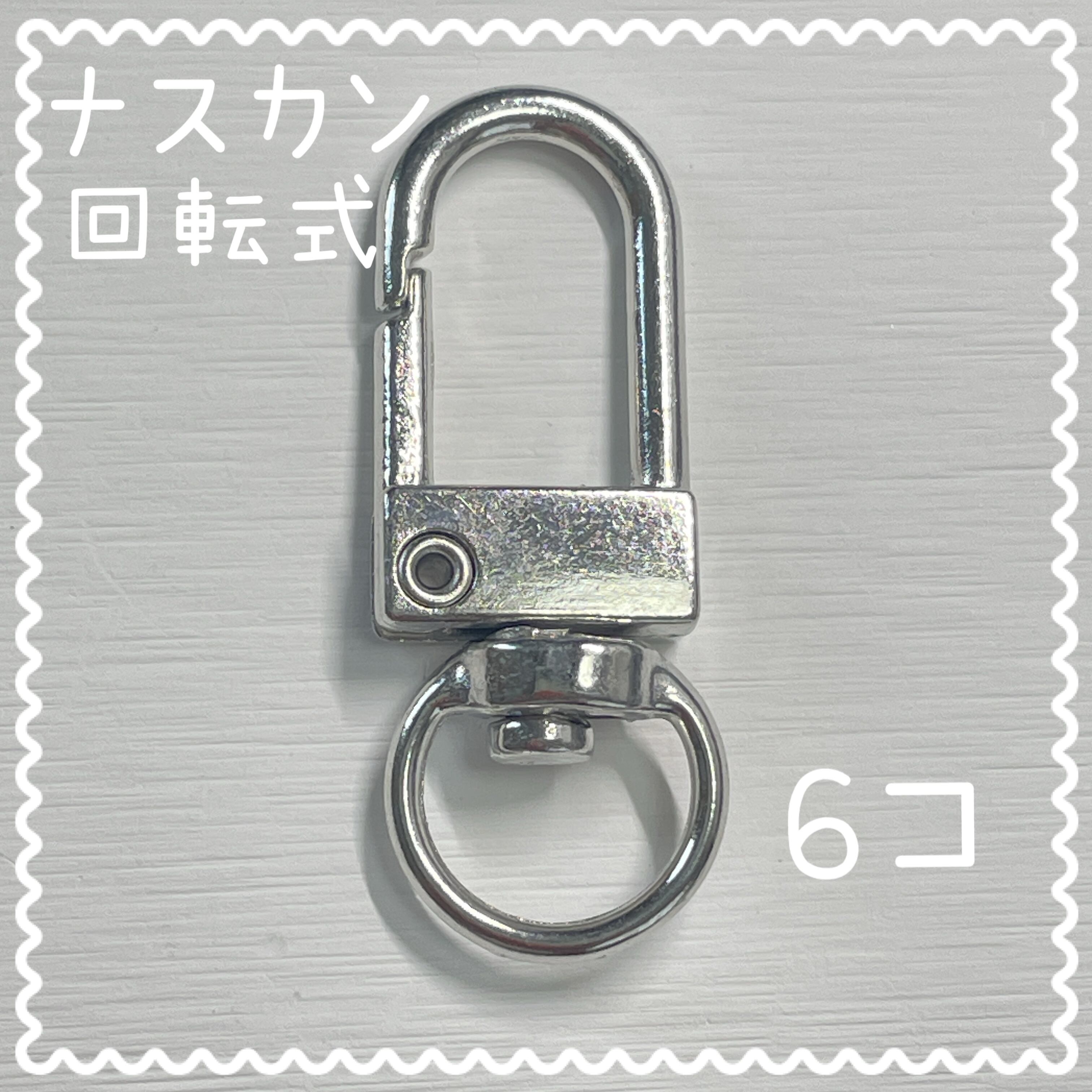 回転式ナスカン シルバー 6個入り 合金製 サイズ 約33×12×5㎜穴10×7㎜