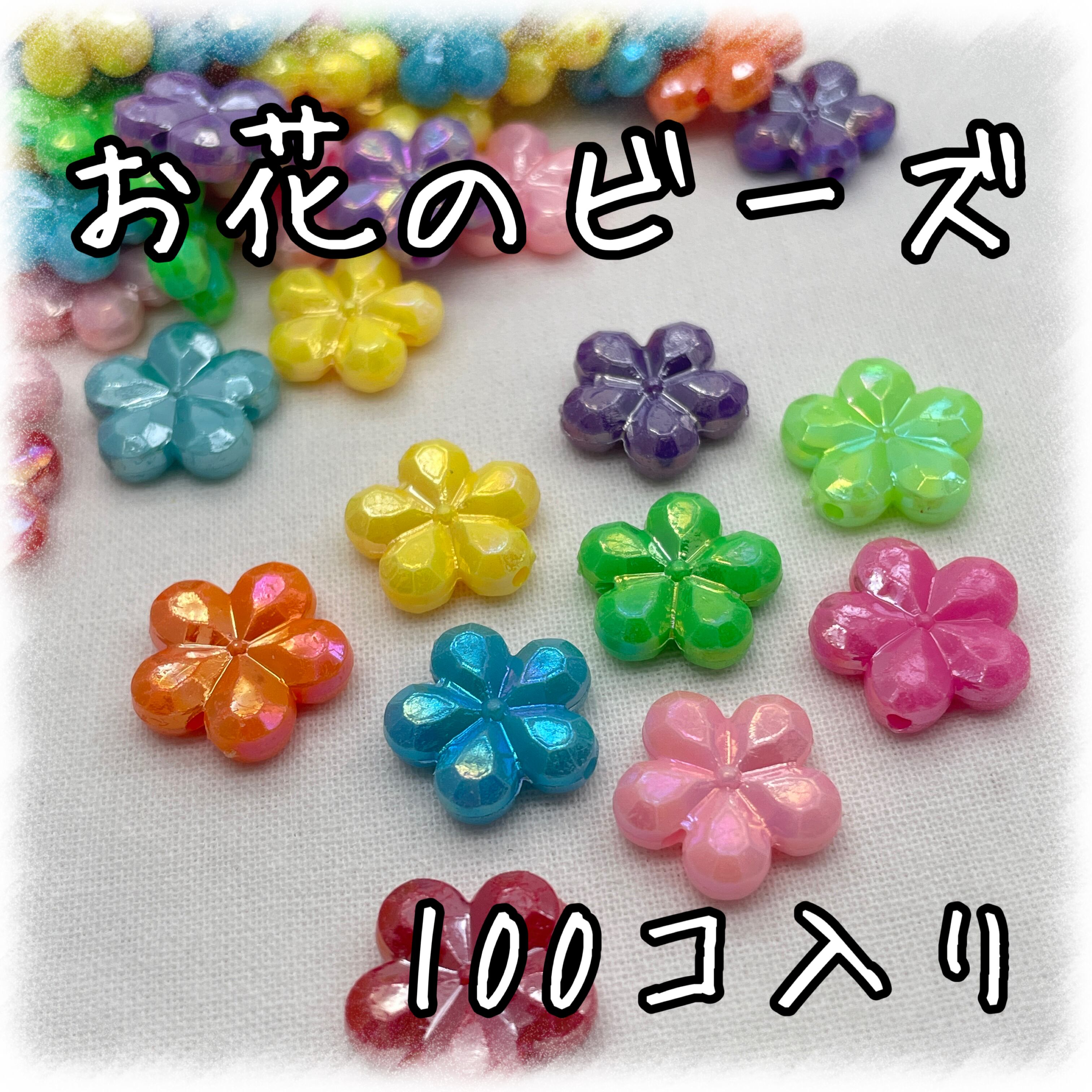 お花 フラワー アクリルビーズ オーロラ加工 100個入り【AB-FLW-a MIX】