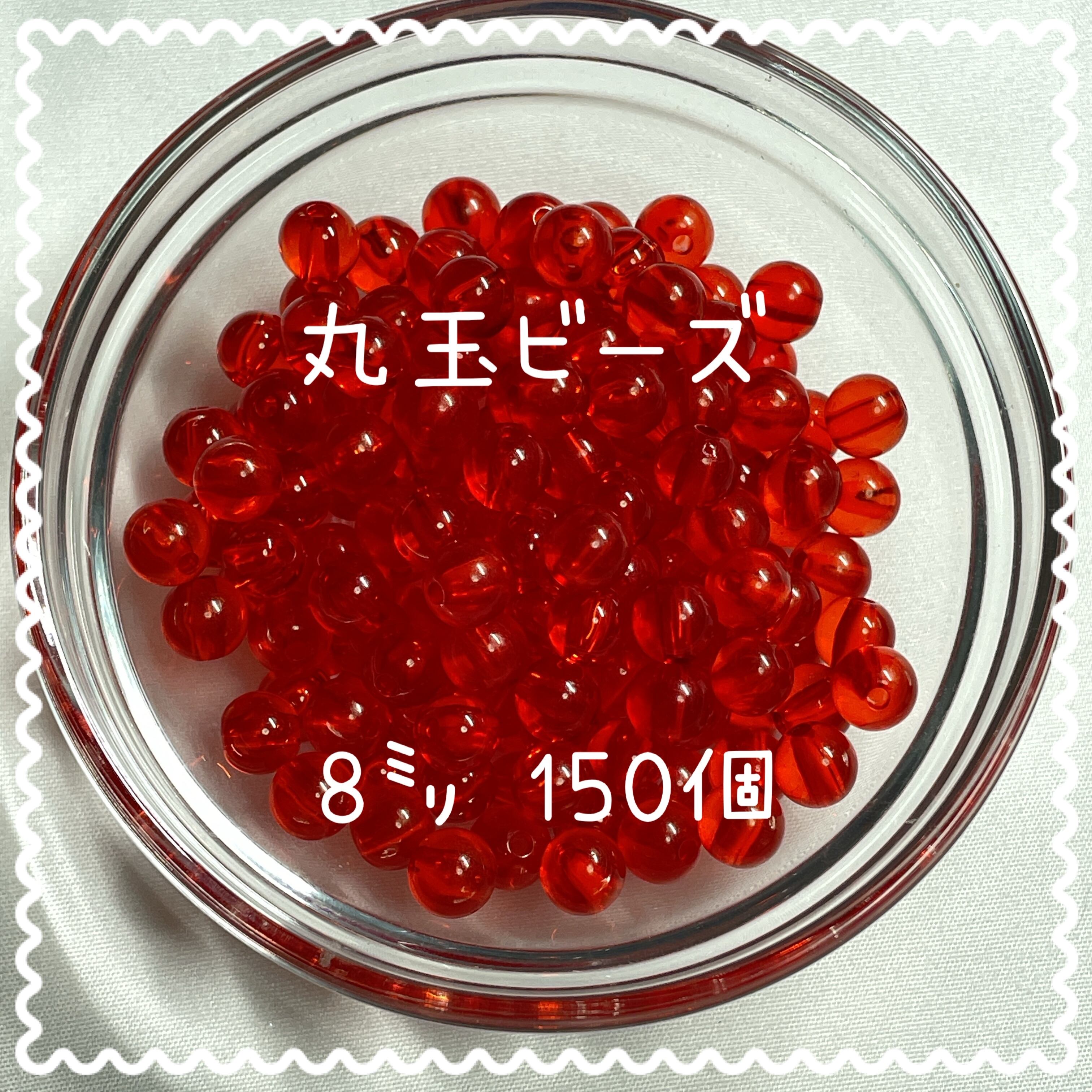 ラウンドビーズ 8㎜ クリア アクリルビーズ レッド 150個入り【RB-cRED】