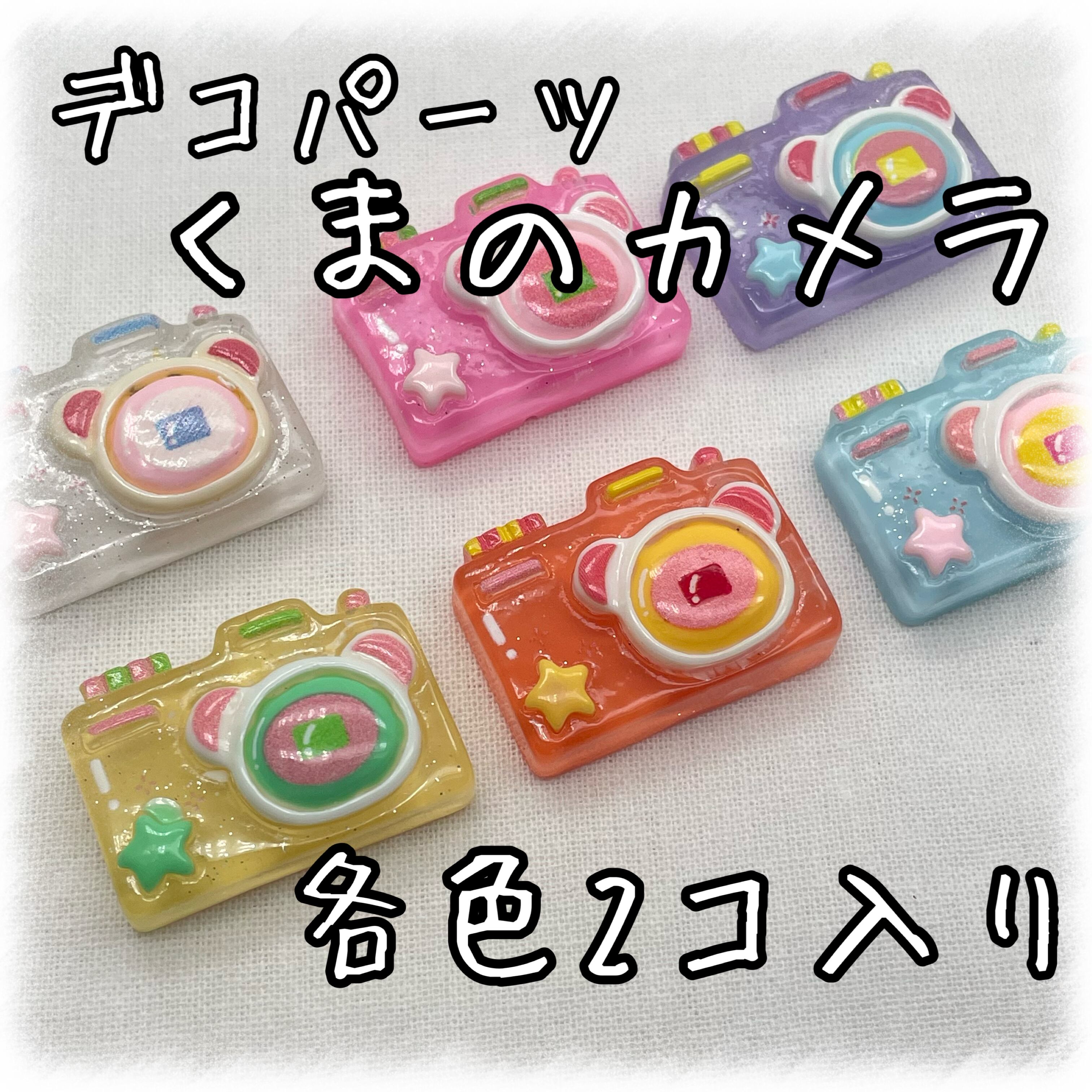 カメラ×くま デコパーツ 各色 2個入り 貼り付けパーツ【DP-BRPT】